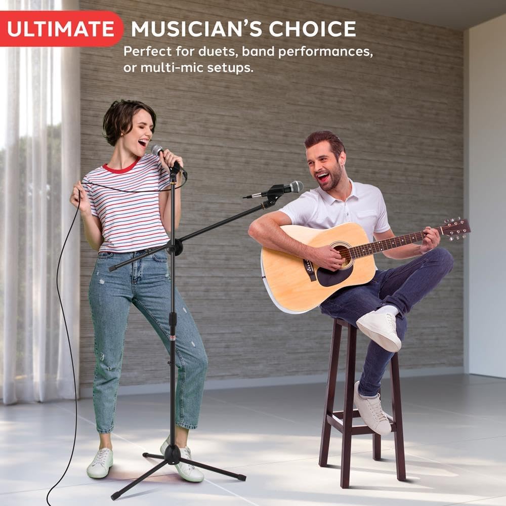 HEIGHT ADJUSTABLE: The boom microphone stand features adjustable height. The compact base microphone stand adjusts smoothly, raise or lower height adjustments from 27.5” to 52”. Also, designed with USA standard ⅝ inch microphone adaptor and threading